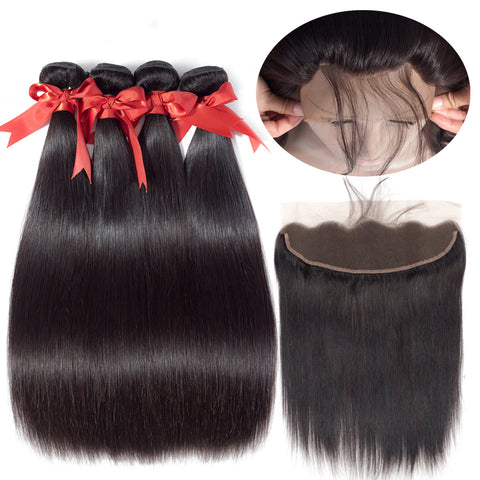 Brazilian Hair Weave Bundles With Frontal Dialove Hair Straight Human Hair Bundles With Lace Frontal Closure