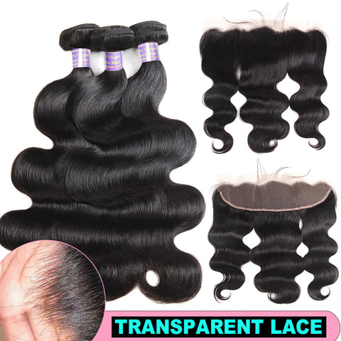 Dialove Body Wave Bundles With Frontal Transparent Non Remy