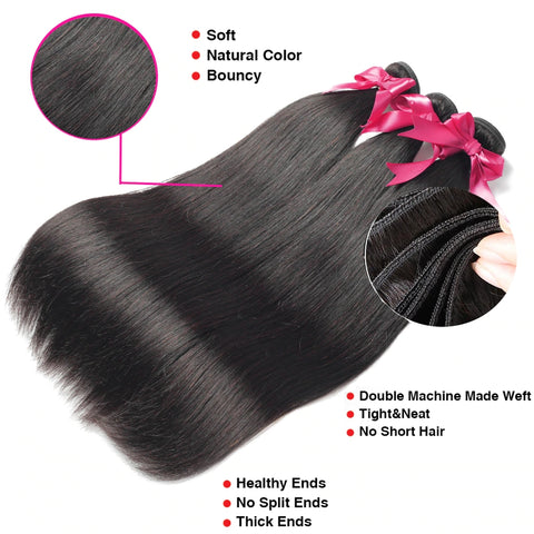 Dialove Straight Hair Brazilian Straight Human Hair Weave Bundles Natural Black 3 pcs/lot 100% Human Hair Bundles Remy Hair